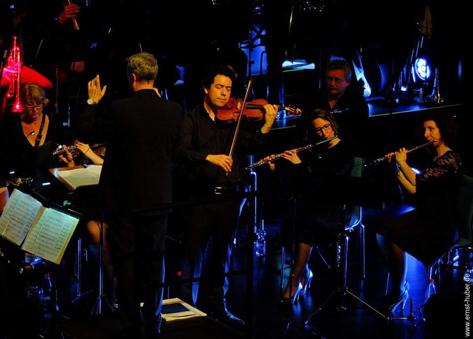 Bei "Schindlers Liste" wurde die Kapelle von dem bekannten Musiker Martin Rothe begleitet, der äußerst gefühlvoll und trotzdem tongewaltig die Melodieführung zu einem besonderen Erlebnis gestaltete. Richtig zum Träumen – auch wegen der schönen Bilder im Hintergrund – gestaltete die rund 40-köpfige Gruppe gefühlvoll "Out of Africa" und vor der Pause "Star Trek – Through the Generations".